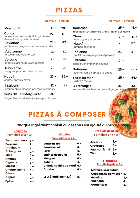 Carte des mets Canta pizza